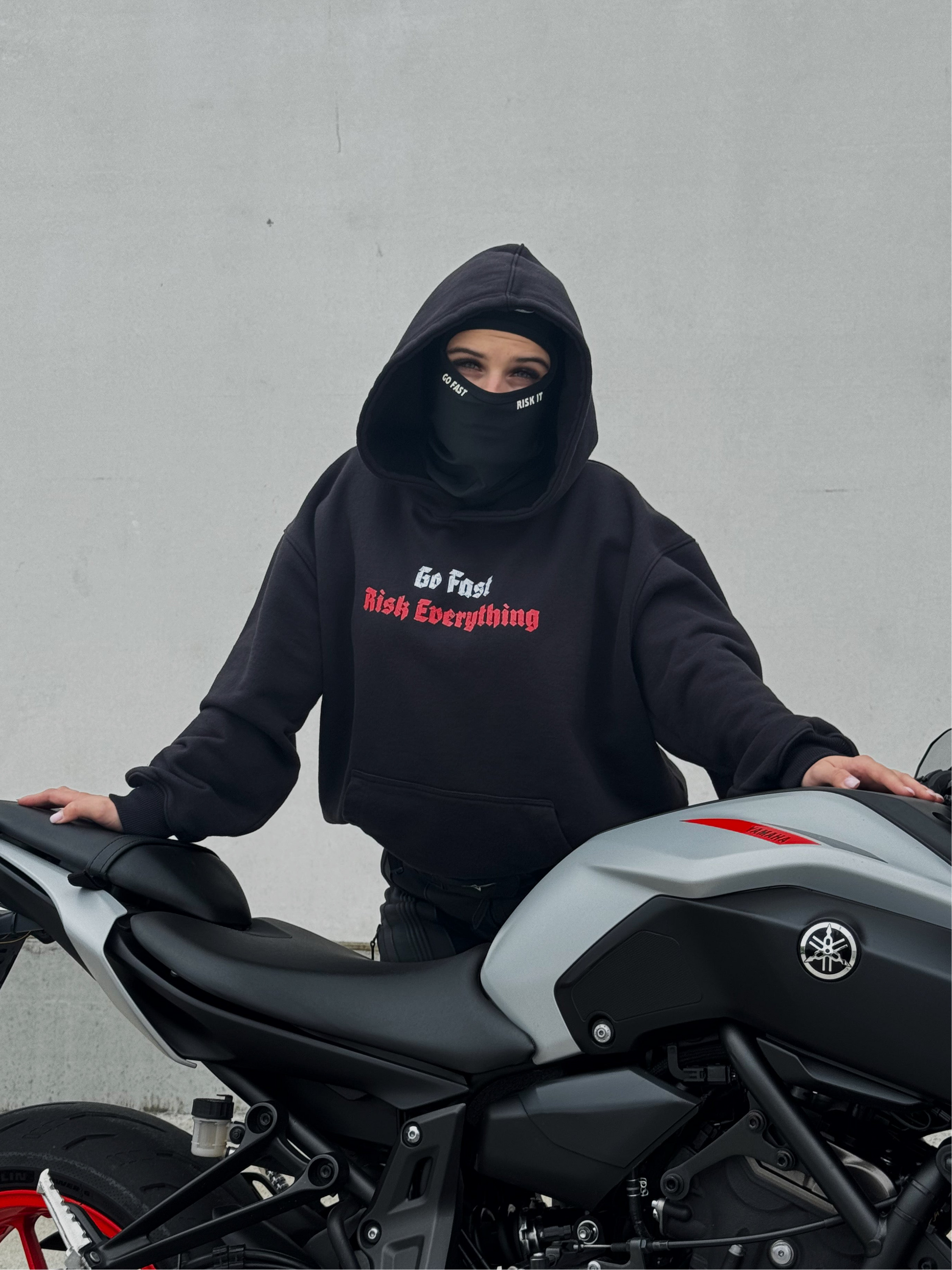 Elevate your style with our "GO FAST RISK EVERYTHING" heavyweight hoodie. Designed with a bold and edgy touch, this hoodie is perfect for those who are not afraid to take risks. Stay warm and make a statement with our unique and stylish hoodie. Made for the daring and fashion-forward individuals.